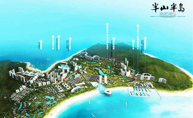 一座全产业链、超大型高端滨海旅游地产项目。坐拥三山两湾世界级珍罕资源,以超前十年的前瞻视角,斥资百亿打造世界一流配套。半山半岛产品包括:别墅、公寓住宅,酒店,帆船港,高尔夫球会,国际学校、医院、艺术中心等。 -